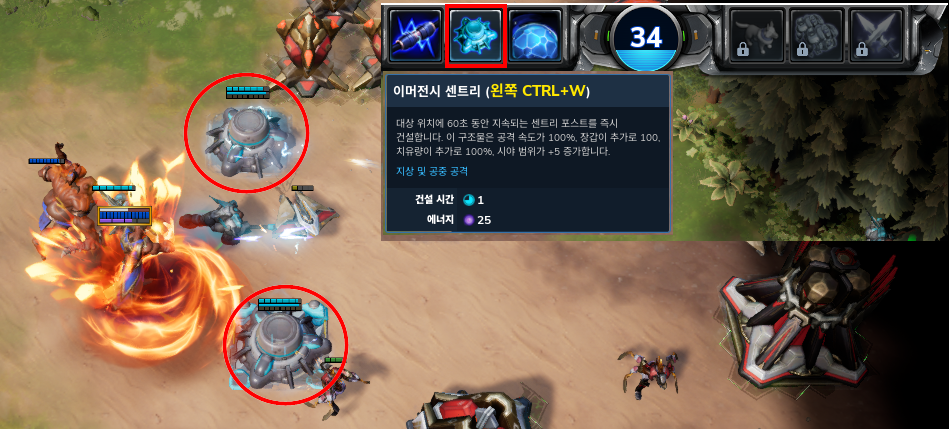 아직 블록케이드만 해보지 않아서 다른 영웅이나 종족 스킬을 명확하게 알지는 못한다. 동일하지는 않을 것 같은데 일단 블록케이드의 경우에는 초반 거점을 먹거나 캠프를 먹을 때 굉장히 잘 활용하고 있다. 쉬움 난이도에서는 거의 이 스킬로 밀었다고 볼 정도로 활용도가 높다. 이머전시 센트리와 쉴드 조합으로 가던이 2개를 깔던이 하면 충분히 어그로 끌리기는 좋다.