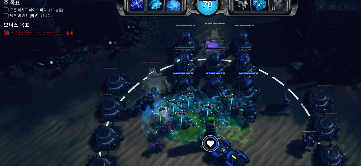6시 체력 캠프는 주기적으로 리셋이 되니 신경써서 잡아주면 되고, 후반에는 나중에는 알아서 공격해 캠프를 유지한다. 6시만 안뚫리면 뭐 클리어했다고 볼 수 있다. 벙커 9개 정도만 있고 일꾼 자동 리페어로 붙여놓으면 게임 끝날때까지 안깨진다.