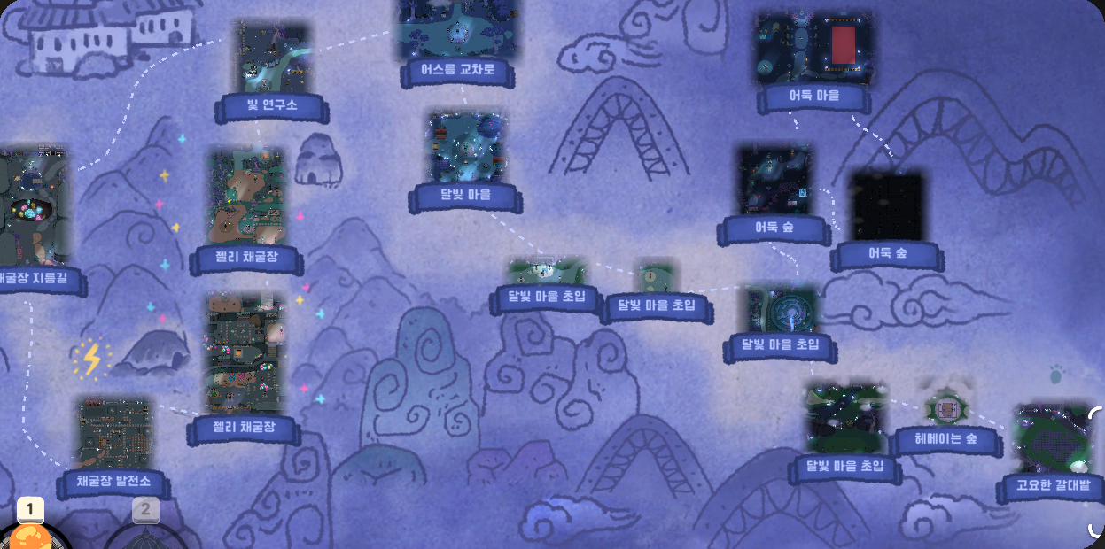 오구와 비밀의 숲, 달숲 지역 전체 지도 모르겠습니다. 그냥 하고 싶었습니다. 원래는 정글부터 했어야 했는데 정글을 이미 건너 뛰어버려서 새로 다시 시작해야합니다. 시간 순서대로 흐름 순