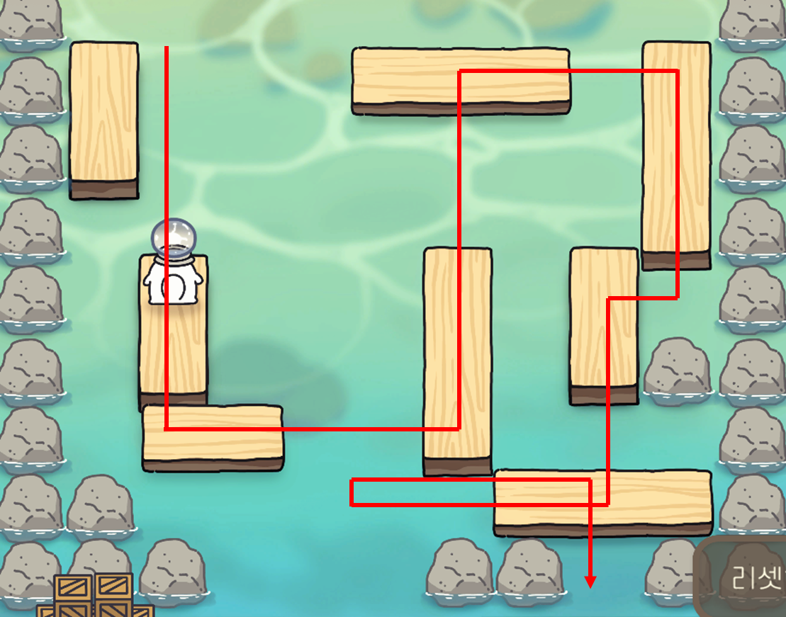소라게 마을에는 아래 그림가 같이 나무 판자를 옮기는 퍼즐이 존재한다. 이 퍼즐을 진행하고 나면 수영을 배울 수 있는 아주 중요한 곳이다. 사실 튜토리얼 격 퍼즐들은 생각보다 쉬운 경우가 많은데 이 경우는 조금 복잡하긴 하다. 하지만 충분히 할 수 있으니 잘 따라오시면 된다. 이제 수영도 배웠겠다 소라게 마을 퀘스트 다 깨고 나면 이전 맵들 한 번 순찰 돌아야겠다.