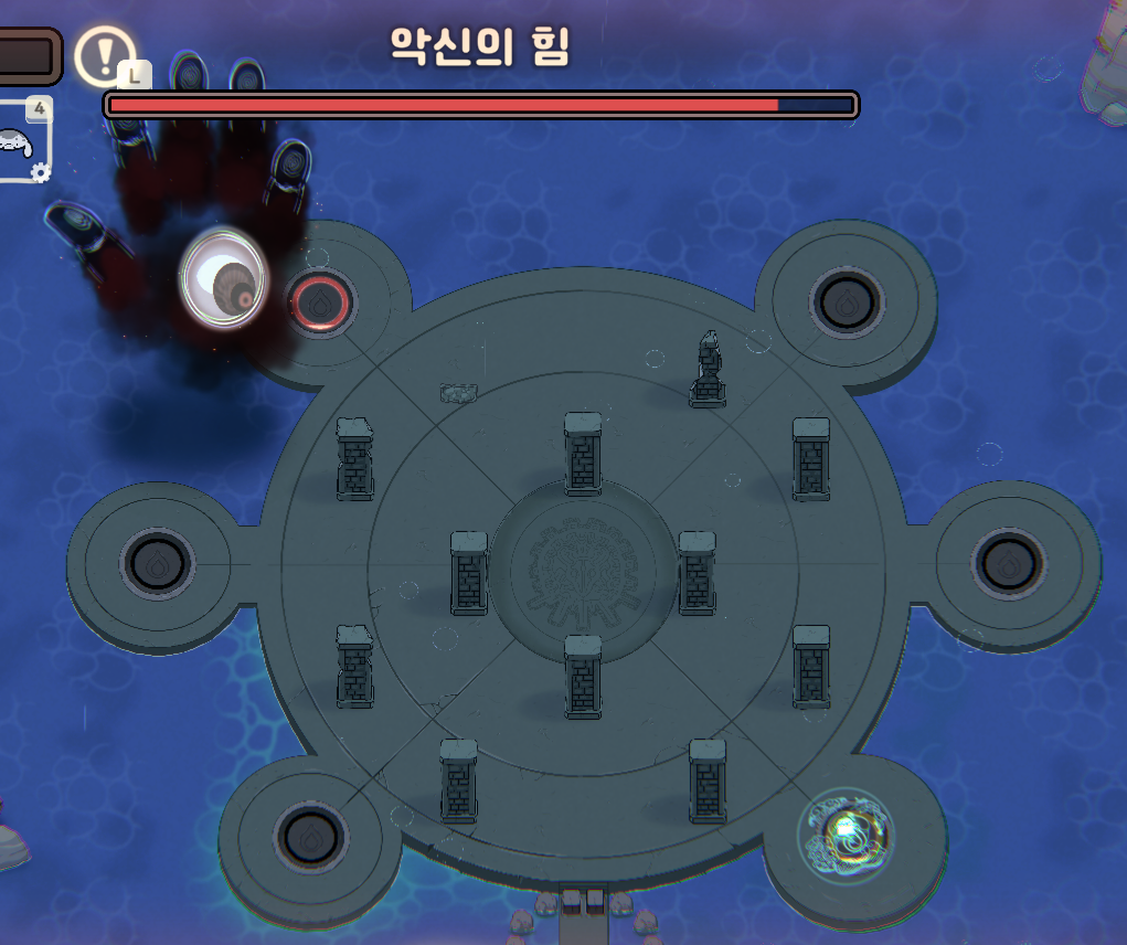 오구와 비밀의 숲을 하다보면서 느끼는 것은 아기 오구 아니었으면 어떻게 클리어를 할 수 있을까이다. 아마 아기 오구 시리즈를 다 깨고 나서 그냥 오구로 플레이해볼 것 같은데 그때는 조금 천천히 플레이를 해보고 싶다. 너무 앞만 보고 달려왔다. 악신의 힘 또한 원 안에서 Q로 춤을 추면 미사일이 발사되는 메커니즘이다.