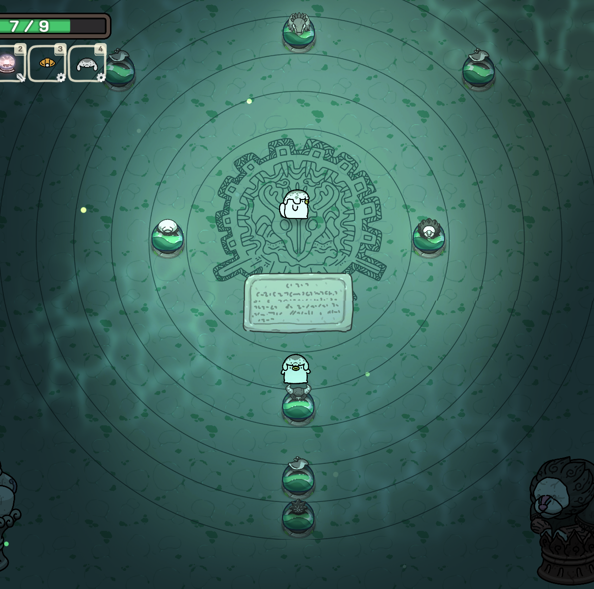 간단하다, 외로운 바다의 맵에는 3개의 제단이 있다. 돌 석상같은 친구인데 거기에 있는 몬스터들을 잡고 풀을 치워주면 환하게 밝아진다. 간단한 퀘스트이다. 클리어 시 토템을 해금할 수 있다.