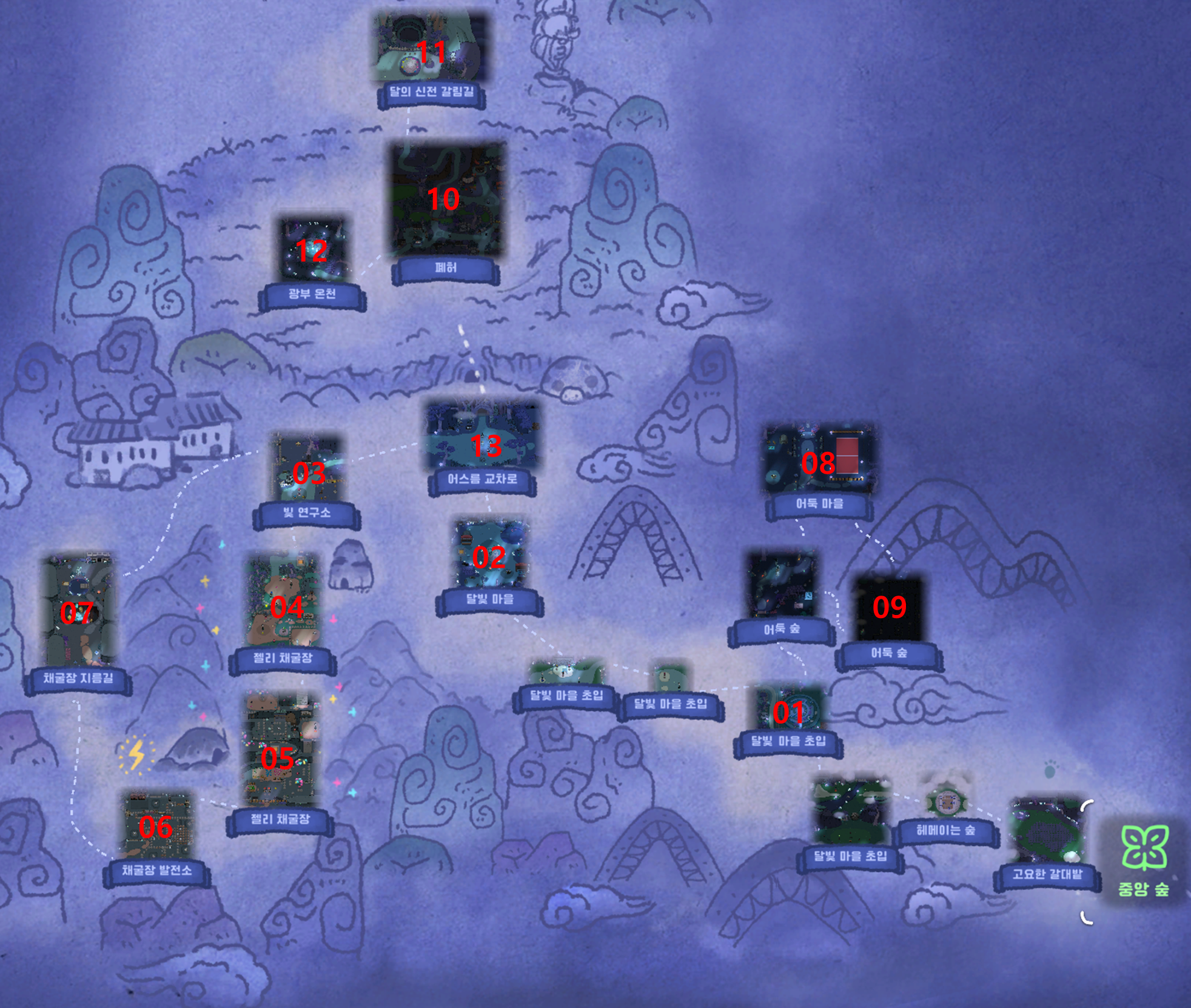 오구와 비밀의 숲, 달숲 지역 전체 지도