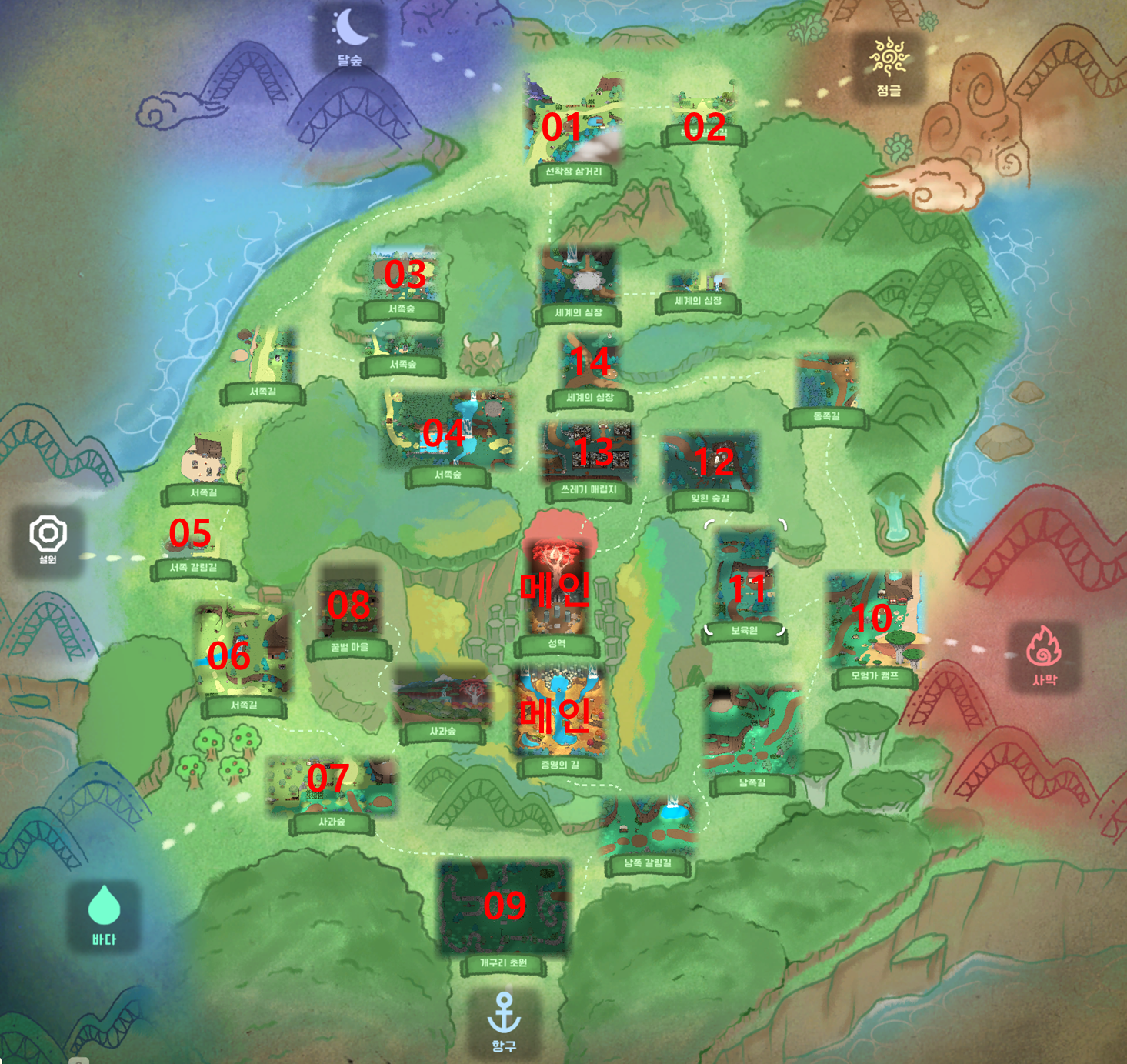 | 오구와 비밀의 숲, 정글 메인서브 퀘스트 / 친구 / 그림일기 / 하트사과 위치 (전체 지도) (2) | 2024.08.12 |