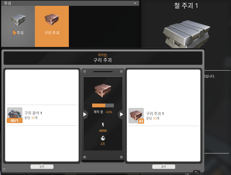 - 제품 생산하기 (주괴, 재료)
