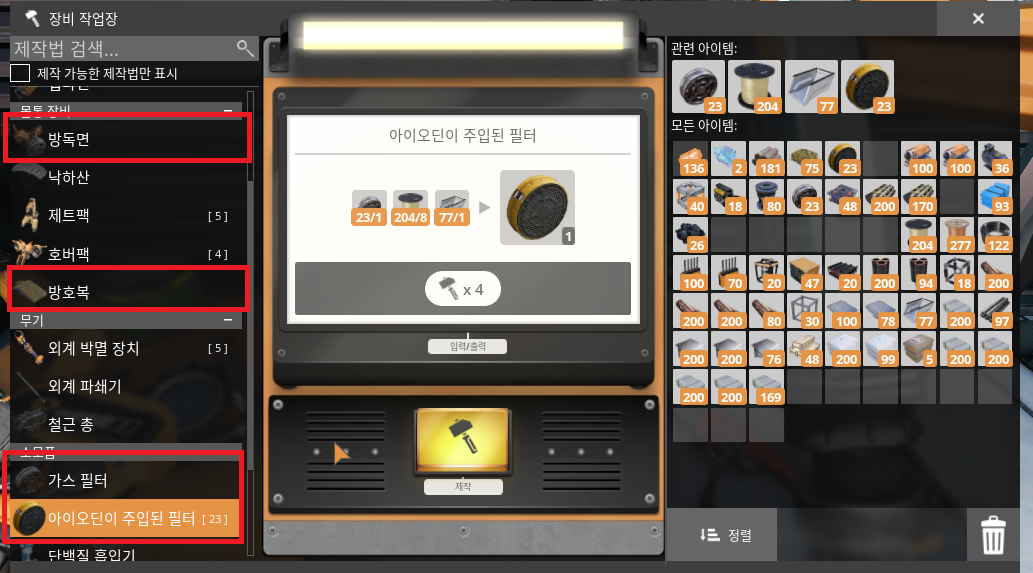 제작법 해금: 방독면, 가스필터 |