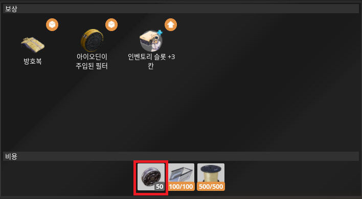 균사 업그레이드를 통해서 얻어야할 것은 가스필터이고, 7티어 방호복을 해금하여 방호복과 방독면을 활용하여 우라늄과 같은 방사능 재료를 챙길 시간이 다가온 것이다. 장비 작업장에서 방독면과 방호복을 만들어주자. 가스필터는 방독면에, 아이오딘이 주입된 필터는 방호복에 사용이 된다.