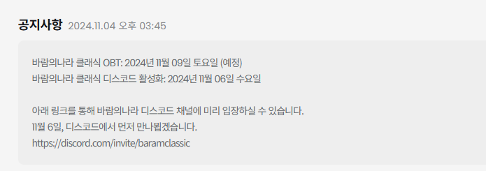 - 디스코드 바람의나라 클래식 (공지)
