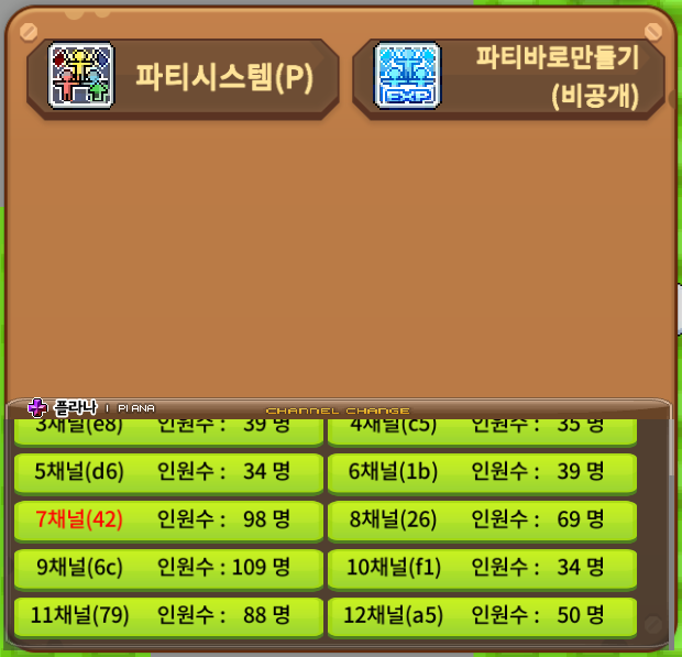 바람의나라 환승센터로 들어가면 아래 그림과 같이 확인할 수 있다. 현재 들어갈 수 있는 채널과 함께 파티 시스템, 혹은 파티 바로 만들기 키를 확인할 수 있다. 사실상 어떤 채널에서 내 파티를 만들 것인가를 물어보는 시스템이라고 보면 된다. 친구를 구하는거라면 가장 인원수 많은 곳에서 파티를 구하면 되고, 친구들과 같이 하려면 인원수가 없는 채널로 넘어가 파티를 만들면 사냥터에 사람도 없고 참 좋다.