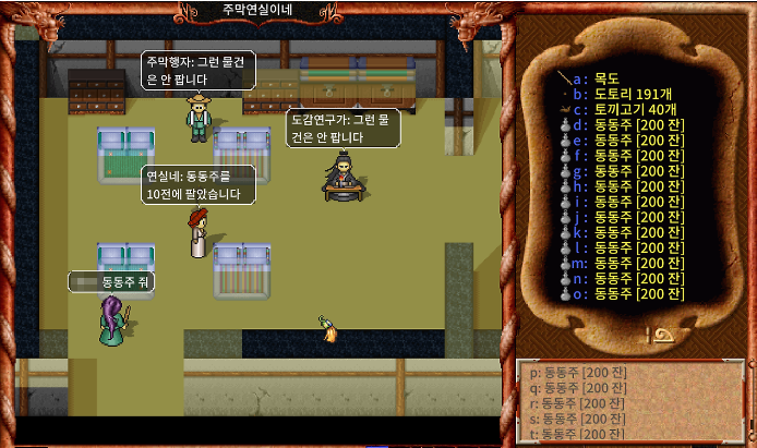 1레벨부터 6레벨까지는 그냥 다람쥐 잡으면서 도토리를 모으는 시기이다. 대략적으로 도토리 500개 정도를 모았던 기억이 있는데 200개는 가지고 있고 나머지는 팔아서 금전으로 가지고 있으면 된다. 초반에는 다람지만 잡아도 충분히 재밌기 때문에 이후 동동주를 사기 위한 밑천을 만들면 된다.