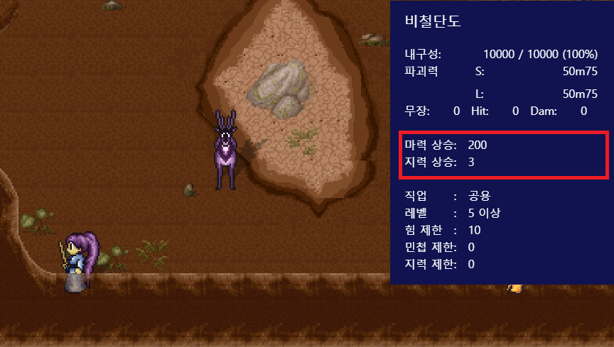 비철단도는 꼭 보스에게만 나오는 것이 아닌 일정 확률로 7굴 이상에 있는 백광록 흑광록에게서 나온다. 그렇기 때문에 조금 여유가 있다면 돼지굴에서 잠시 벗어나 사슴굴에서 비철단도를 얻어보자. 렙제가 5렙이기는 하지만 힘 / 민첩 제한이 있다고 하더라도 저렙에서 참 좋은 무기라고 생각한다.