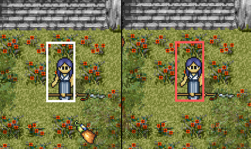 Tab은 한 번 누르면 자유롭게 이동이 가능한 흰색 박스가 생성 된다. 이게 유저여도 상관없고 몬스터일경우도 상관이 없다. 탭을 한 번 더 누르면 아래 그림처럼 빨간색으로 고정이 된다. 그러면 이제 언제든지 탭을 누르면 빨간색으로 지정했던 곳으로 가게 된다. 탭탭키의 장점은 두 가지가 있다.
