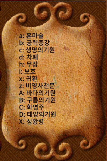 도사 스킬 구성은 본인에게 맞는 방향대로 사용하면 되는 것이라 어떤게 정답이다, 이런 것이 없습니다. 키패드의 '+' 를 누르면 내 스킬을 볼 수 있으며, 각 스킬마다 알파벳이 붙어있다. 스킬 순서를 바꾸는 것은 Shift+c 이후 자리 바꿀 마법을 입력하면 된다.