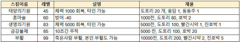 도사의 무기가 좋아지면 힐이 더 들어가는가? 장비가 좋으면 오래 살아남을 수 있는가? 이 질문에 대해서는 모두 과감하게 아니라고 이야기 하고 싶다. 기원으로 채워지는 힐들은 모두 고정값이다. 무기의 공격력이 높아도 올라가는 구석은 단 1도 없다.