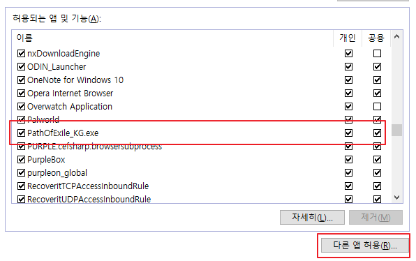 - 4. POE2 Windows defender 앱 허용 또는 전체 해제