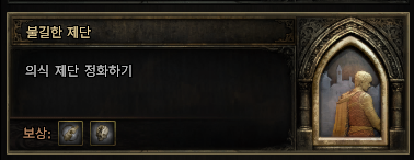 맵 전체적으로 퍼져있는 의식 제단을 정화하면 된다. 문제는 제단의 최종 왕이 '연무 속의 왕'이라는 아이인데 체력 다 깎아놓으면 한 번 풀피로 다시 등장한다. 그래서 조금 레벨을 올리고 클리어하는 것이 좋아보이기는 한다. 솔직히 조금 빡시긴 하다. 오겸 농지까지 다 돌고 레벨업 든든하게 해서 클리어해보자.