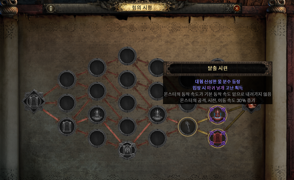 물론 열쇠를 택하면 시련 전직을 모두 완료하고 나서 상자를 열 수 있지만 일단 클리하는 것을 목표로 잡았기 때문에 다른 것은 눈에 들어오지 않았다. 물론 레벨이 높아서 그냥 클리어를 했지만 20레벨 초반에 진행하시는 분들은 전략적으로 다가가야 할 듯 하다.