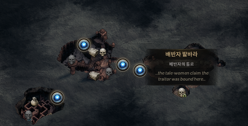 POE2에서는 내가 잡았던 보스들은 색이 지워지고 아직 잡지 않은 퀘스트나 보스들은 환하게 비춰준다. 배반자 발바라는 역시 진행하지 않았고 일단 배반자 발바라를 먼저 잡고 와야 다음 컨텐츠가 열린다. 몬스터 레벨은 19인 맵이며 나는 지금 33이니 무난하게 잡지 않을까?
