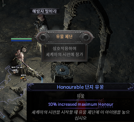 우리가 명예를 어떻게 지켜야할까? 한 대도 맞지 않으면 이론상 가능하지 않을까? 하지만 그건 너무 야만적이지 않을까. 세케마의 시련에는 내가 원하는 경로로 갈 수 있는 선택지가 존재하는데 여기에 명예를 회복하는 방식의 시련이 존재한다. 해당 시련을 완료하면 명예를 회복하게 된다.