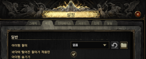 그러면 바람의나라 클래식이나 다른 게임처럼 걸리면 계정이 정지되는 그런것 아닐까 생각하지만. 안타깝게도(?) POE에서 공식적으로 지원하는 기능이다. 설정 - 일반 - 아이템 필터가 이제부터 우리가 적용해야할 그 필터의 기능이다. 처음에는 조금 익숙해지기 어렵지만 나중에는 필터 없으면 아예 게임이 진행이 되지 않을 정도이다.