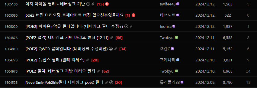 아래 링크를 클릭하면 가입이 가능하고, 사실 POE1부터 있었던 근본있는 카페이기 때문에 고수분들이 넘쳐나는 곳이다. 그만큼 답변이나 공략에 대한 퀄리티도 뛰어난 곳이다. 여기에 POE2 아이템 필터가 모두 모여있다고 보면 된다. 한국 POE 공식 카페에 '미디어 - 필터 자료실'에 모든 필터들이 모여있다. 제작해주신 분들에게 감사함을 느끼며 필터들을 살펴보자.