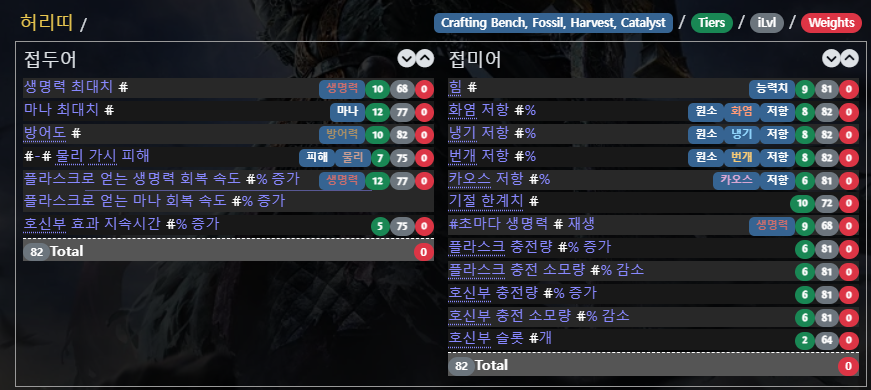 - 추천 접두어: 생명력 최대치, 마나 최대치