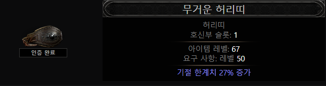 - 추천 허리띠 베이스: 무거운 허리띠 (기회의 오브), 특수 허리띠 등