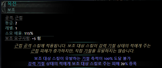 워낙 도약강타가 느리기 때문에 공격 속도를 증폭시켜서 조금 더 빠르게 스킬이 나갈 수 있도록 플레이 할 수 있다. 도약강타에 목전까지만 달 수 있다면 꽤나 편한 플레이가 가능하여 폐사 구간이 조금 더 빠르게 지나갈 수 있다고 판단된다.