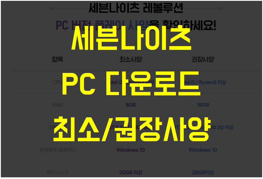 세븐나이츠 레볼루션의 최소 사양은 CPU Intel i3 이상이며 램은 8GB, 그래픽 카드는 GXT460이다. 그래픽 카드야 뭐 지뢰찾기도 잘 돌아가지 않을 것만 같은 사양지만 램이 CPU나 그래픽카드보다 높은 편이다.