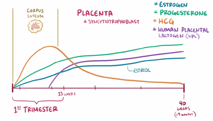 임신하기 전에는 나오지 않는 호르몬이지만 수정과 착상이 되어 자궁에 안착하면 슬금슬금 나오기 시작한다. 왜냐면 황체의 퇴화를 막아 계속 임신 상태를 유지해야하기 때문이다.