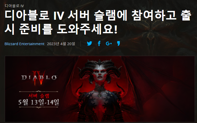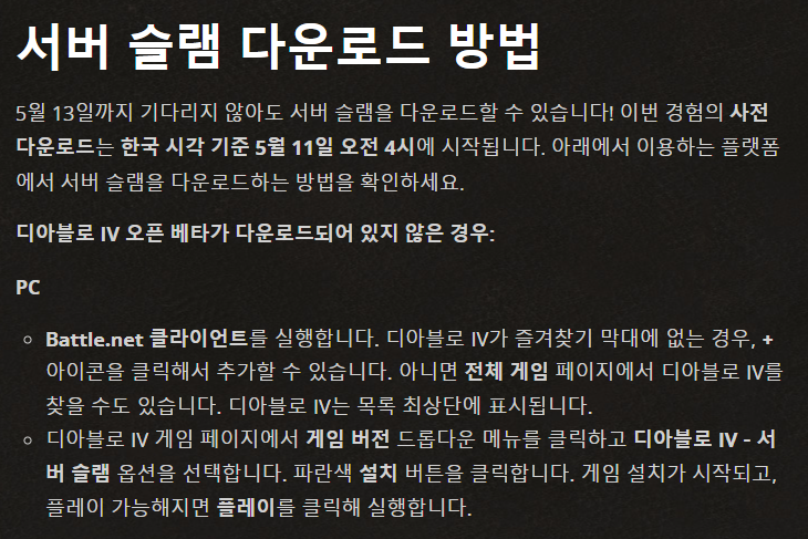 [디아블로4] 서버 슬램 오픈 일정 / 시간 / 사전 다운로드 알아보기 (추가 오픈베타)
